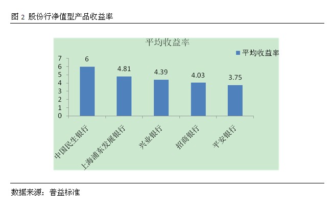 从公布的最高预期收益率来看,2季度有公布净值型产品预期最高收益率的股份行,其平均收益率为4.32%。其中,中国民生银行虽然存续的净值型产品不多,但是收益率位居股份行第一位,达6%,显示出较强的投研能力;其他公布预期最高收益率的银行包括上海浦东发展银行、兴业银行、招商银行和平安银行,其平均预期最高收益率分别为4.81%、4.39%、4.03%和3.75%。
