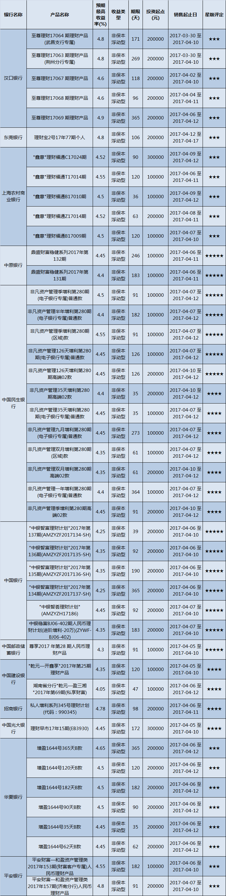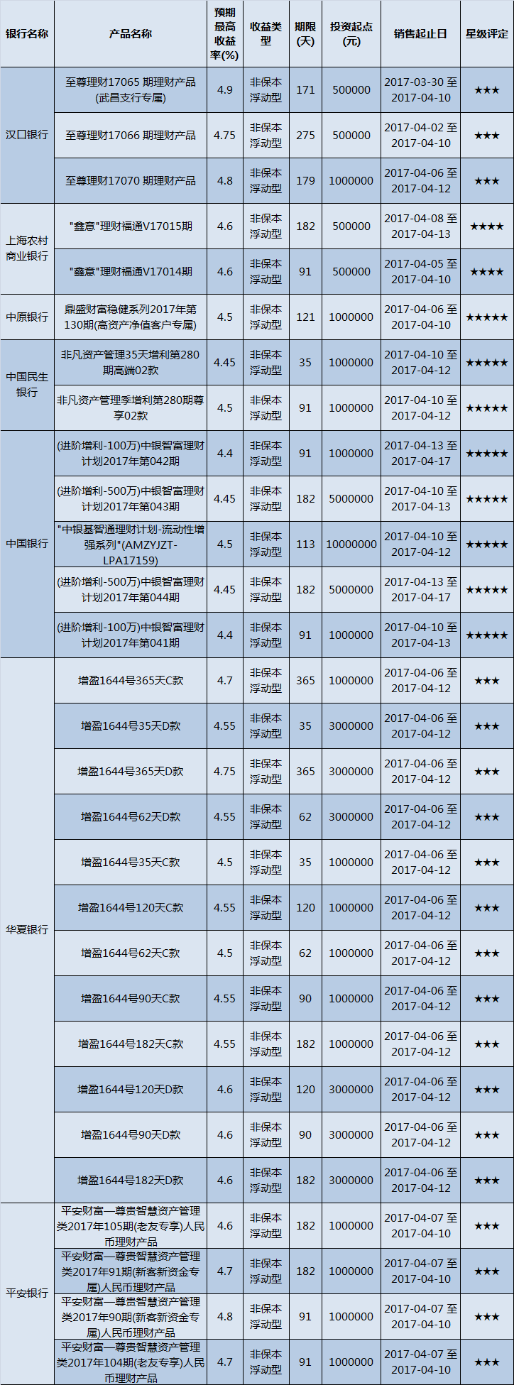 其余产品暂时未予评级。(数据截至上周五18:00)