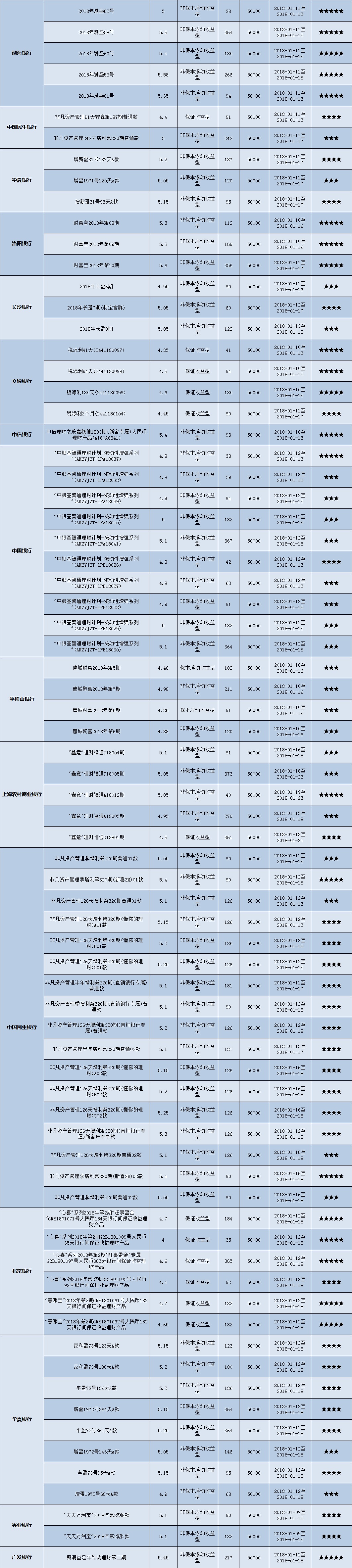 中等门槛(10万元至50万元(不含))的理财产品中,华中地区有44款获得普益标准星级评价,平均预期收益率为5.18%。其中三星产品27款,平均预期收益率为5.1%;四星产品12款,平均预期收益率为5.28%;五星产品5款,平均预期收益率为5.4%。