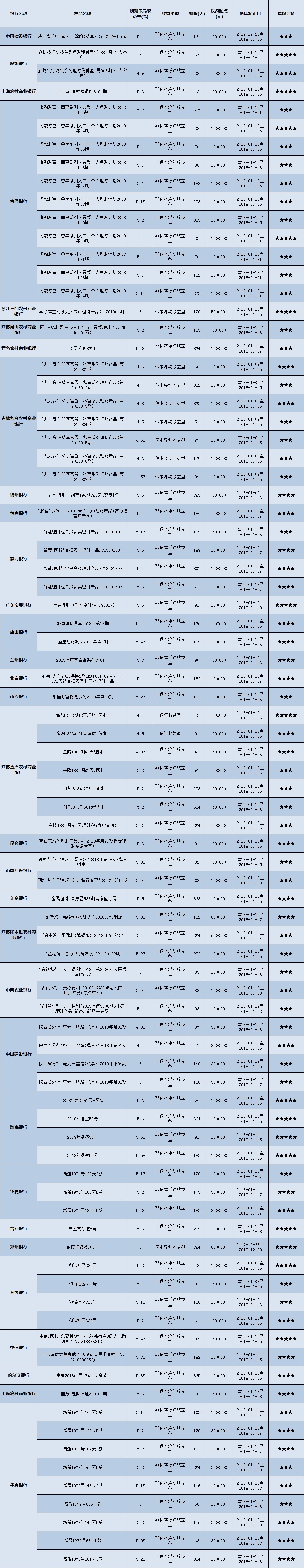 本周投资门槛在10万元至50万元(不含)的产品有154款,平均预期收益为5.1%。其中有115款获得普益标准星级评价,平均预期收益率为5.19%。其中三星产品54款,平均预期收益率为5.08%;四星产品38款,平均预期收益率为5.22%;五星产品23款,平均预期收益率为5.4%。