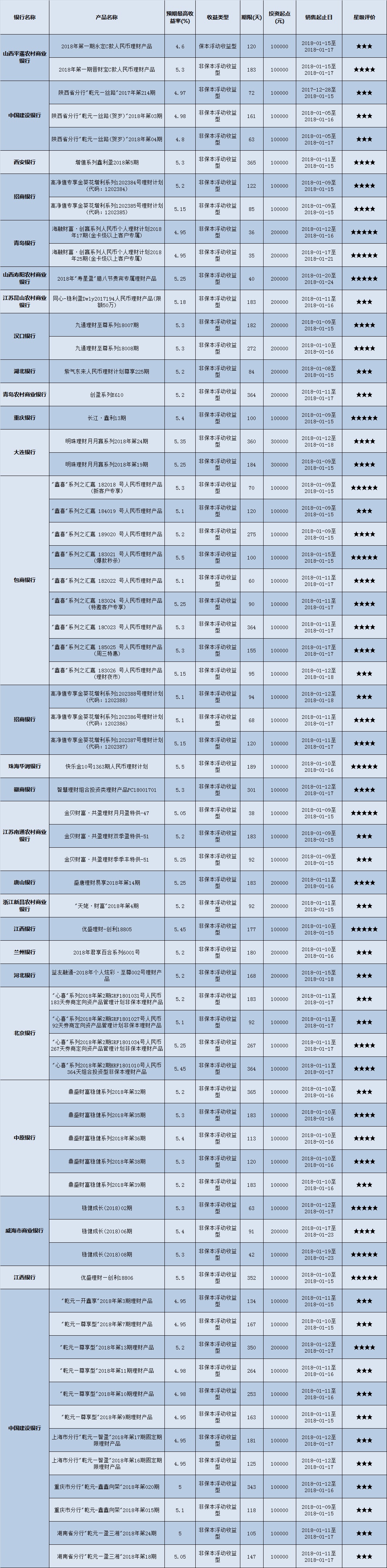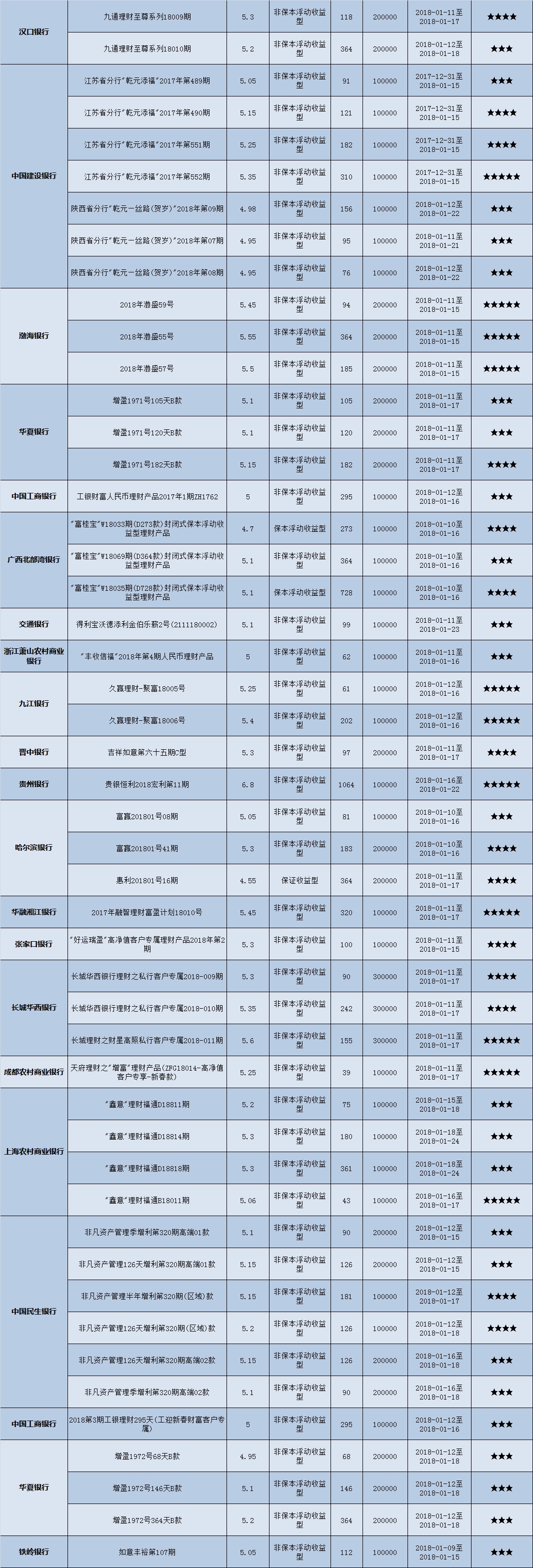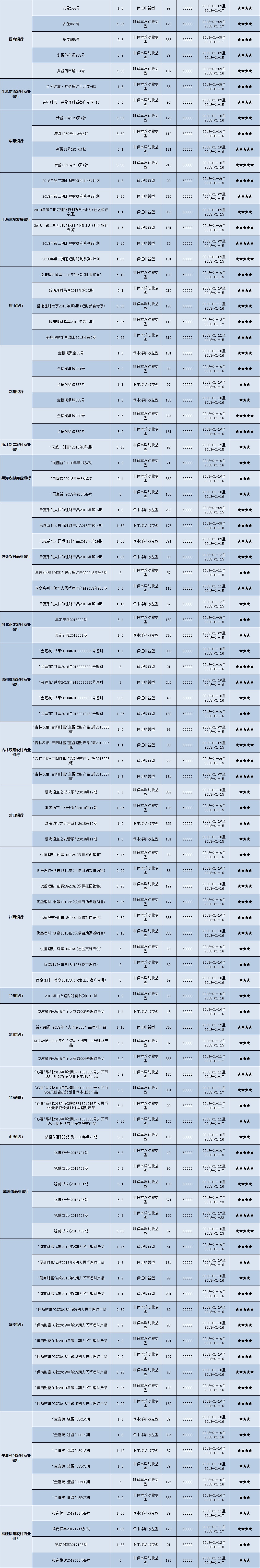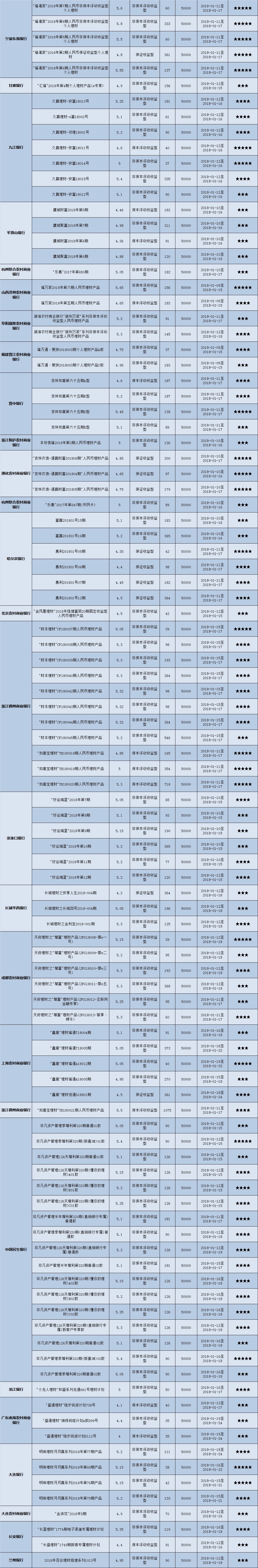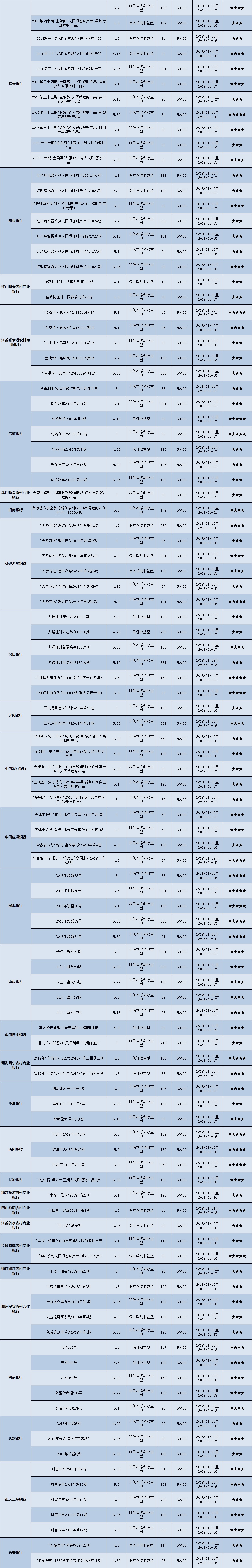 本周投资门槛在10万元以下的产品有1206款,平均预期收益为4.78%。其中有904款获得普益标准星级评价,平均预期收益率为4.95%。其中三星产品421款,平均预期收益率为4.82%;四星产品303款,平均预期收益率为5.05%;五星产品180款,平均预期收益率为5.07%。