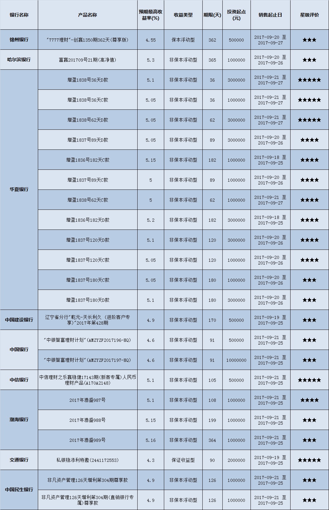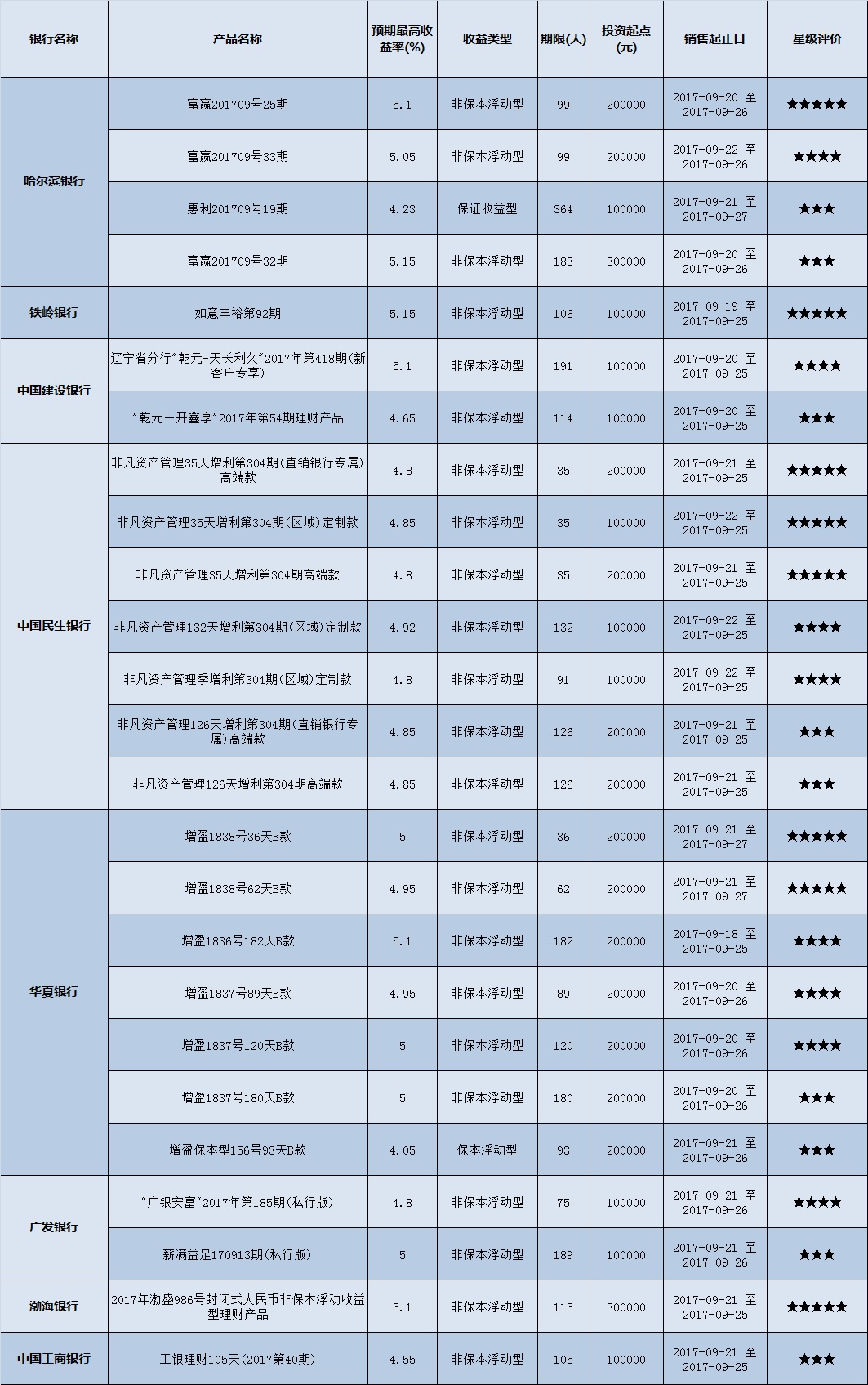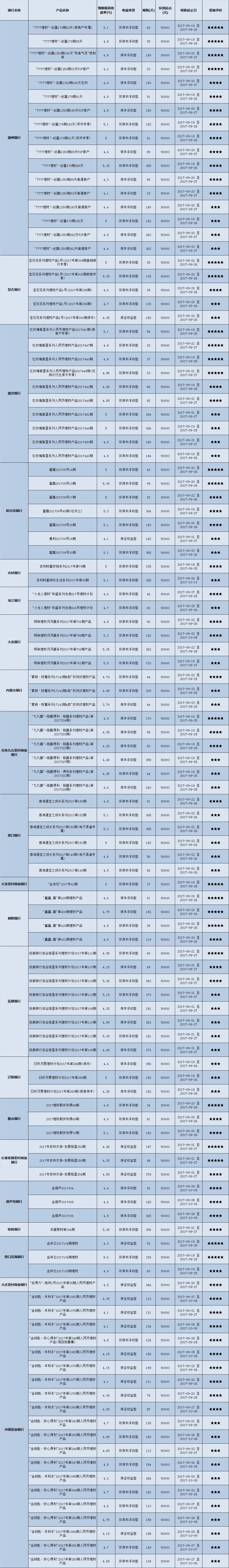 低门槛(10万元以下)理财产品中,东北地区有205款获得普益标准星级评价,平均预期收益率为4.7%。其中三星产品82款,平均预期收益率为4.61%;四星产品76款,平均预期收益率为4.68%;五星产品47款,平均预期收益率为4.86%。
