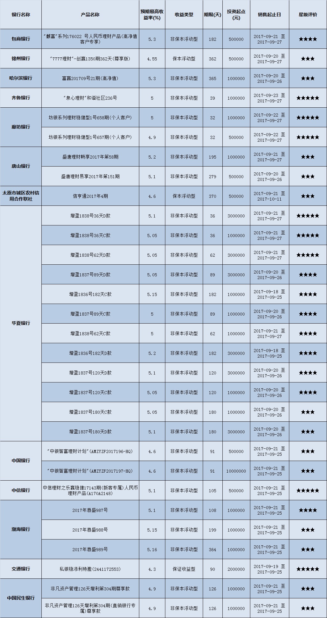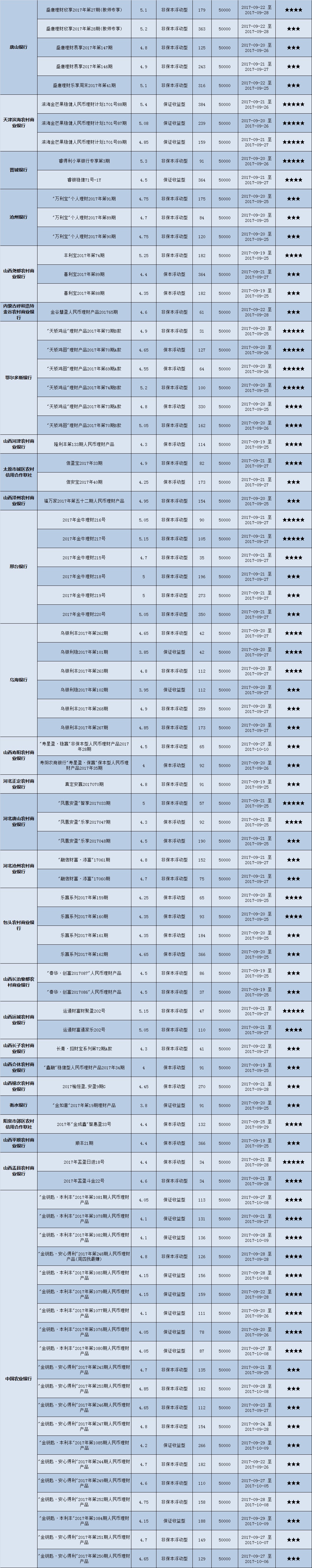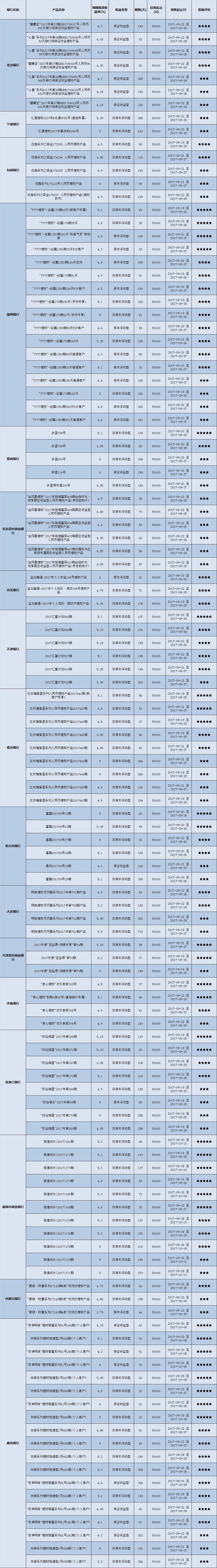 高门槛(50万元及以上)的理财产品中,华北地区有30款获得普益标准星级评价,平均预期收益率为4.99%。其中三星产品13款,平均预期收益率为4.94%;四星产品9款,平均预期收益率为5.11%;五星产品8款,平均预期收益率为4.94%。