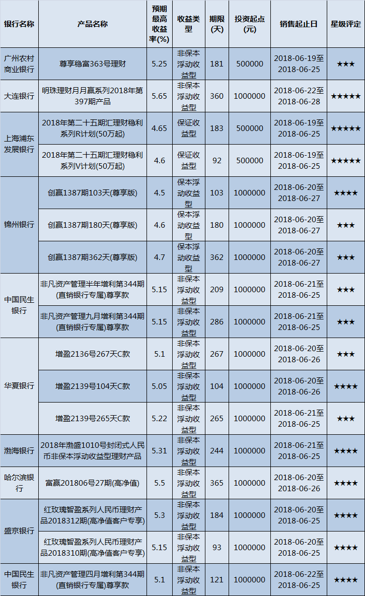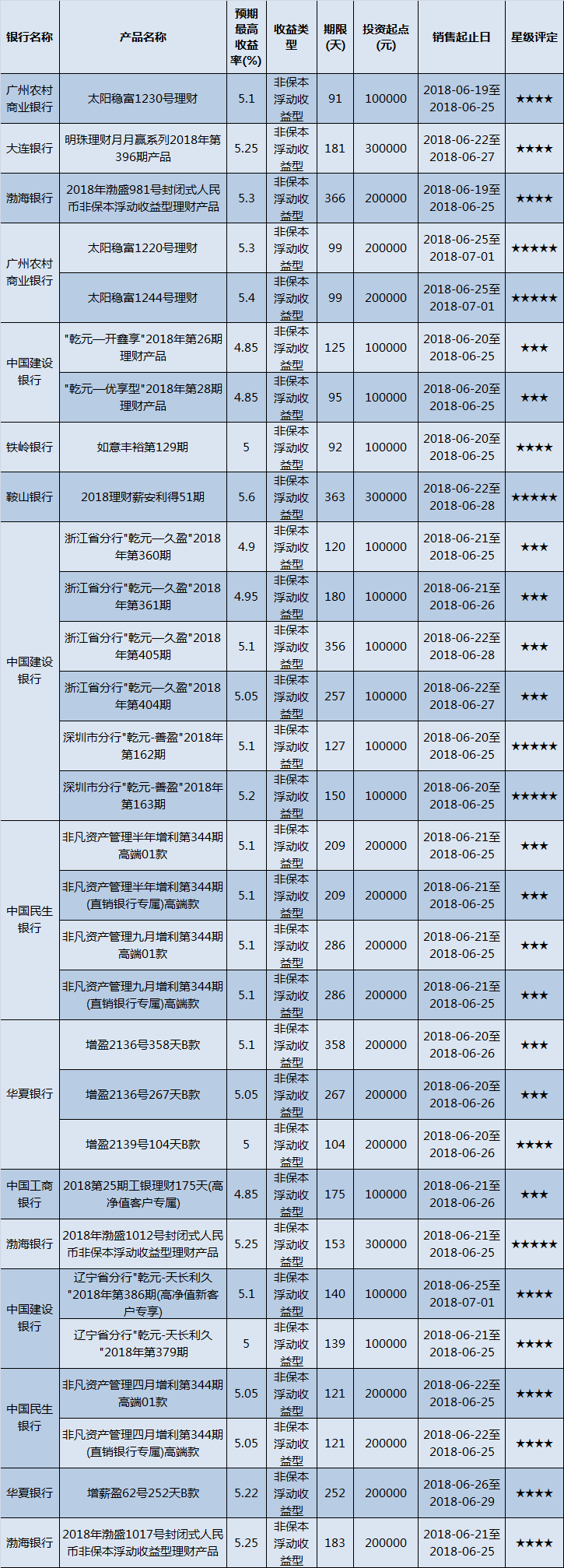 其余产品暂时未予评级。(数据截至上周五18:00)