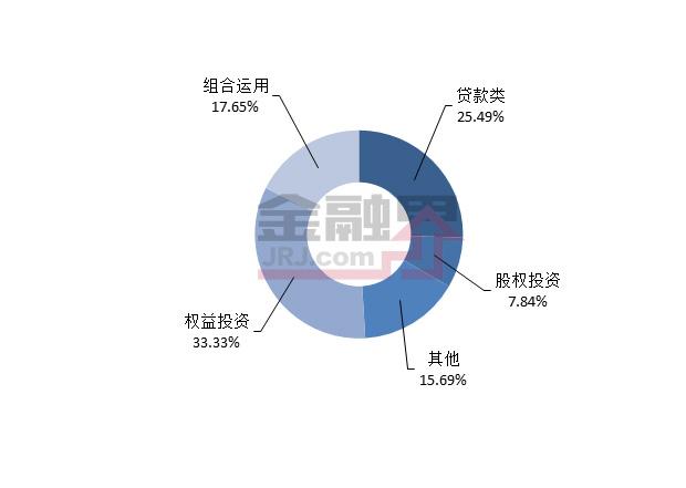 从资金运用方式来看,贷款类运用类产品成立了13款,组合运用类产品成立了9款,权益投资运用类产品成立了17款,其他运用类产品成立了8款,股权投资类产品成立了4款。