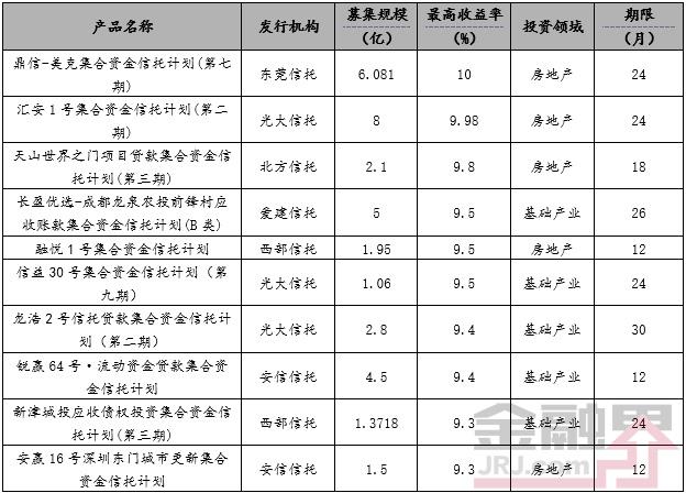 本周(2018.08.11-2018.08.17)新成立信托产品收益率排行