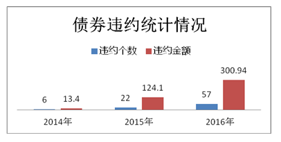 截至11月28日,今年以来,发生违约的债券已有57只,债券余额共计300.94亿元,有别于过去主要集中于民企违约的情况,今年有部分国企、央企卷入其中。从2014年3月份第一起违约事件后,截止目前共有违约事件85起,涉及金额438.44亿元。2015年发生违约的22只债券涉及金额124.1亿元,2014年违约债券6只涉及金额13.4亿元。2016年违约债券余额远远超过2015年和2014年违约债券余额总和。今年违约涉及金额占比违约总金额:68.64%,可见今年债券违约情况呈现爆发式的增长。