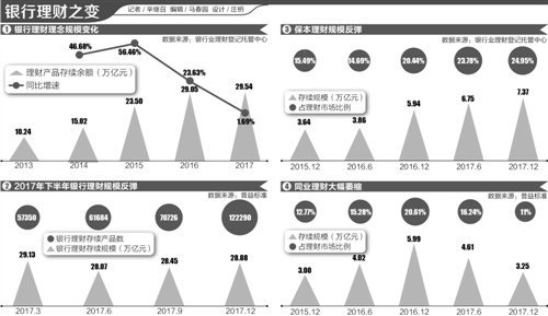 2017年,银行理财规模变化走出“V”字形,上半年缩水之后,下半年在零售理财、保本理财的推动下,开始反弹。