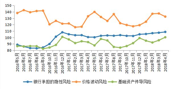 价格波动风险今年以来首次下降。本月,受中美贸易战持续升级和资管新规落地的影响,各类基础资产市场出现震荡,进而促使基础资产传导风险上升;资管新规落地,银行需在规定的过渡期内完成业务转型,面临较大挑战,其所承担的隐性风险有所增加;为了对冲前述原因造成的市场波动,央行运用多种货币政策工具以及定向降准等措施,缓释市场流动性压力,维护市场的基本稳定,促使价格波动风险有所下降。