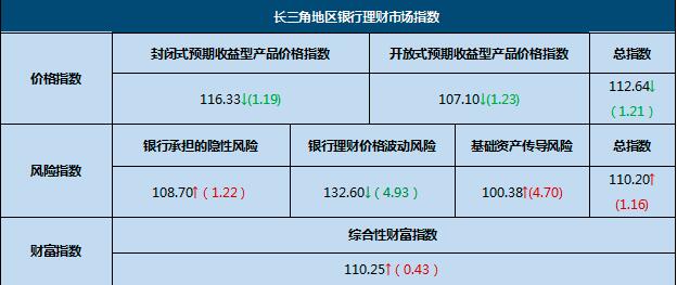 长三角地区银行理财风险指数是由目标银行承担的隐形风险、价格波动风险以及基础资产传导风险三类风险加权所得,主要反映了银行理财市场的整体风险状况。该指数越大说明对应市场的风险也越高,反之则风险越低。