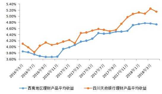 天府银行较西南地区收益领先优势继续扩大。进入2018年4月后,四川天府银行理财产品收益相较西南地区平均水平有所回落,但仍然保持了较为明显的领先幅度。从具体表现来看,四川天府银行理财产品平均收益为5.16%,回落9BP;而西南地区平均收益为4.74%,环比下滑3BP。从产品定价角度来看,四川天府银行理财产品仍然领先西南地区平均水平42BP,考虑到目前银行理财产品收益有较强的保障,投资者可直接根据收益高低选择理财产品。