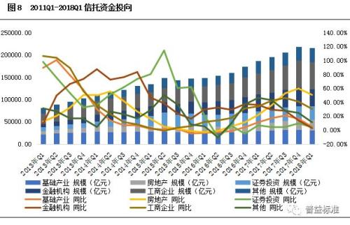 投向工商企业的信托资金增速仅低于房地产领域;