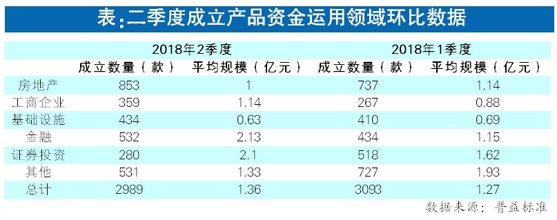 成立规模方面,房地产领域产品平均成立规模为1.00亿元,环比回落12.25%;工商企业领域产品平均成立规模为1.14亿元,环比上升29.97%;基础设施领域产品平均成立规模为0.63亿元,环比下降8.04%;金融领域产品平均成立规模为2.13亿元,环比上升85.45%;证券投资领域产品平均成立规模为2.1亿元,环比上升29.71%;其他领域产品平均成立规模为1.33亿元,环比下降31.26%。