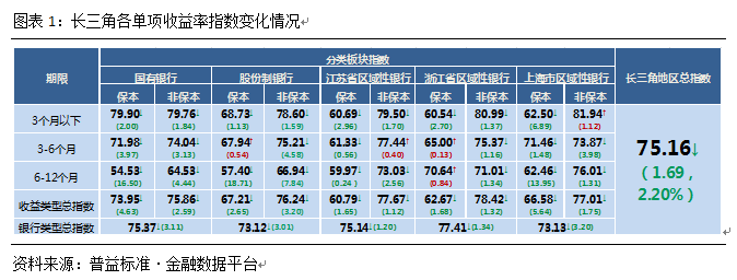 从收益率指数走势图可以看到,长三角地区本月收益率指数虽然仍呈现下滑态势,但整体下滑幅度继续呈现收窄趋势,并没有在7月出现大幅度的向下表现。江苏省区域性银行指数与浙江省区域性银行指数均表现出了下滑幅度缓步收窄的趋势,其中江苏省区域性银行指数在近两个月收窄幅度更为明显。上海市区域性银行收益率指数在4月攀升至顶点后便持续大幅下跌,截止2016年7月,上海市区域性银行收益率指数继续创出新低至73.13,下滑4.19%。