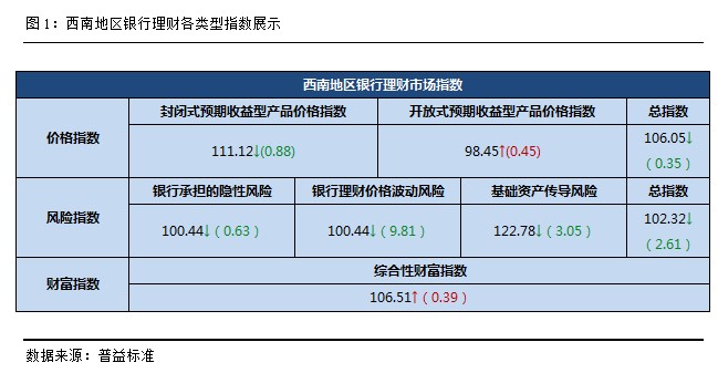 西南地区银行理财风险指数是由目标银行承担的隐形风险、产品的价格波动风险以及投资于基础资产传递的风险三类风险加权所得,主要反映了银行理财市场的整体风险状况。该指数越大说明对应市场的风险也越高,反之则风险越低。