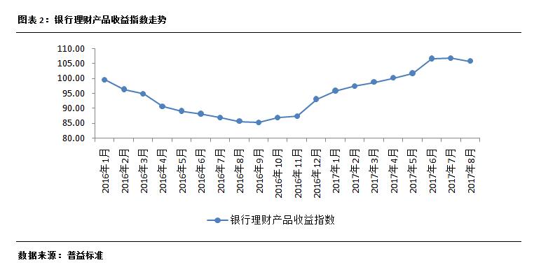 8月,理财产品收益指数整体呈现出小幅下行变化。
