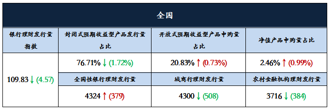 2.全国银行理财产品发行量下滑,发行指数跌幅收窄