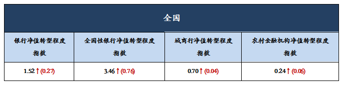 全国净值转型程度指数持续提升,环比上涨0.27点至1.52
