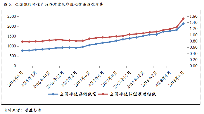 各类银行净值产品存续量环比均增,全国性银行净值转型程度大幅领先