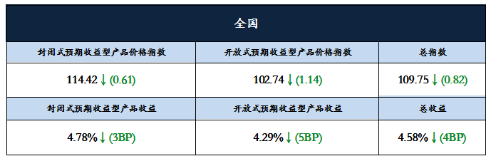 封闭式与开放式预期收益型产品收益继续下调,价格指数跌幅缩小