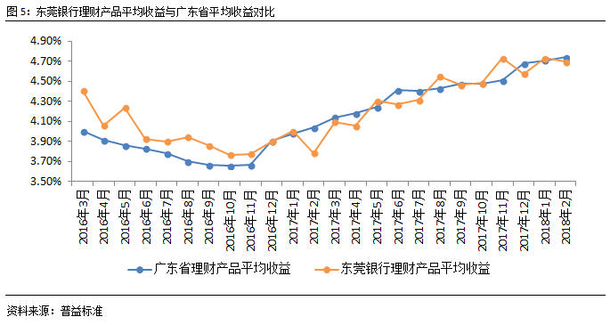 从收益表现来看,在年终考核节点以及春节过后,广东省理财产品收益仍然处于上涨态势,连续两个月均上涨0.03%,节后国内外市场利率仍然较高,是推动节后银行理财产品收益率高企的重要因素。东莞银行理财产品收益小幅下降,略低于广东省平均水平。