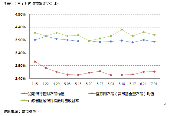 4.区域银行短期产品收益率展示及短期银行理财产品与互联网理财产品收益率走势对比