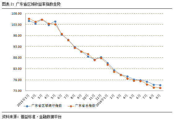 2016年8月,广东省指数出现了下滑幅度增大的表现,不过在进入9月后,其收益率指数明显企稳,与8月表现接近,仅环比下滑0.14点。本月较多发行主体收益率指数均出现了上扬表现,广东省收益率指数在上个季度明显下滑的情况下,仍未能出现翻红表现,下个季度下滑可能性增大。不过考虑到年末将近,收益率企稳可能是大多数银行希望看到的结果。广东省总指数在9月也表现出了幅度收窄的趋势,预计第四季度总指数会表现将较为稳定。