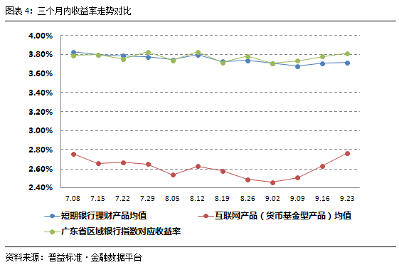 4.区域银行短期产品收益率展示及短期银行理财产品与互联网理财产品收益率走势对比