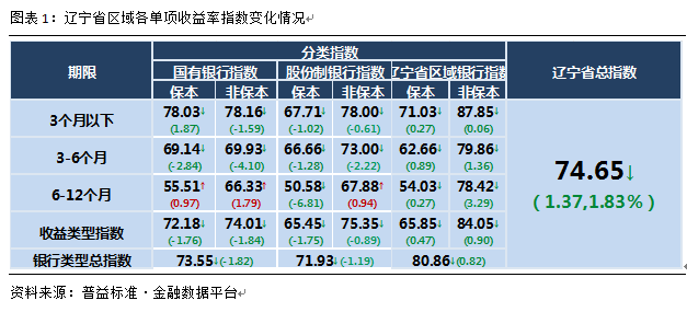 辽宁省区域银行收益率继续维持强势表现,全国性银行表现相对低迷。