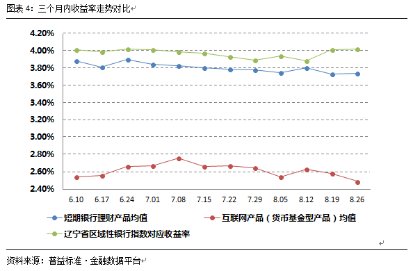 4.区域银行短期产品收益率展示及短期银行理财产品与互联网理财产品收益率走势对比