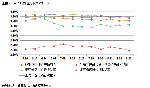 4.区域性银行短期产品收益率展示及短期银行理财产品与互联网理财产品收益率走势对比