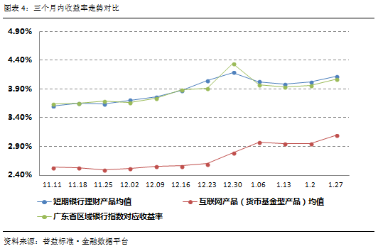 4.区域银行短期产品收益率展示及短期银行理财产品与互联网理财产品收益率走势对比