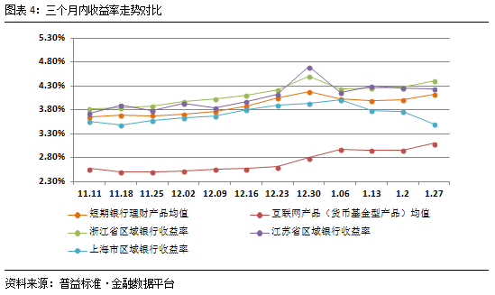4.区域性银行短期产品收益率展示及短期银行理财产品与互联网理财产品收益率走势对比