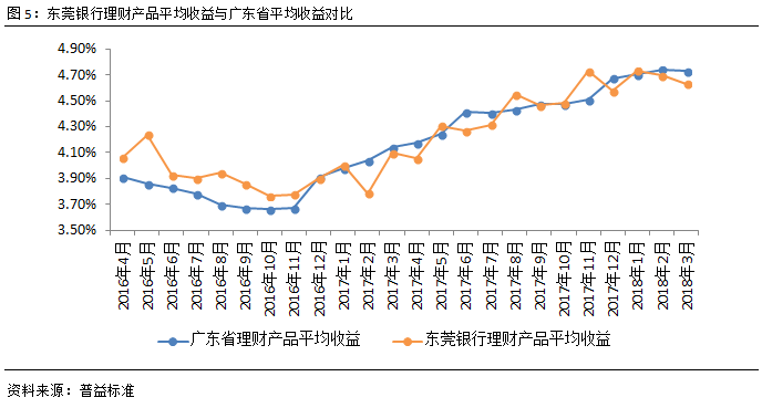 从理财收益表现来看,广东省理财产品收益环比下降1BP至4.73%,东莞银行理财产品收益环比下降6BP至4.63%,东莞银行整体收益再次低于广东省平均。