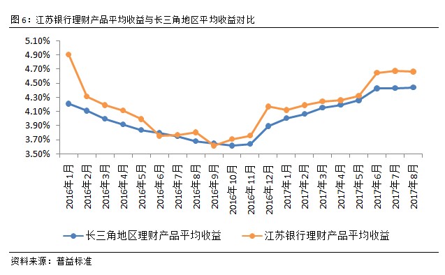 江苏银行理财收益微幅下调,仍大幅领先地区水平。从江苏银行理财产品的平均收益来看,8月该收益水平微幅下调,而长三角地区理财产品平均收益略有上升,但江苏银行理财收益水平仍大幅领先。从理财收益的走势来看,江苏银行与长三角地区的银行理财收益在年中考核过后未出现回落,在7、8月维持住了年中考核的水平,甚至出现了稳中有升的局面,说明长三角地区相较于全国资金需求更为强烈。对投资者来说,江苏银行理财收益明显高于长三角地区平均水平,说明其在产品管理、业务发展方面具有一定的优势,值得关注。