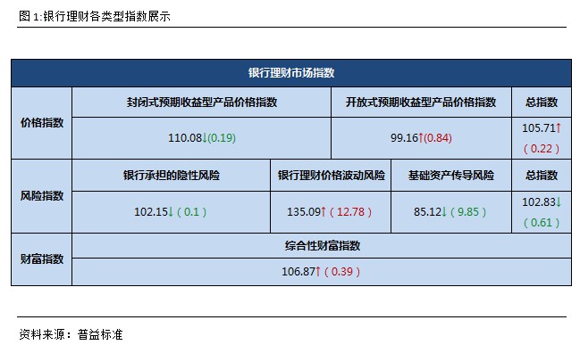 全国银行理财风险指数是由目标银行承担的隐形风险、价格波动风险以及投资于基础资产传递风险三类风险加权所得,主要反映了银行理财市场的整体风险状况。该指数越大说明对应市场的风险也越高,反之则风险越低。