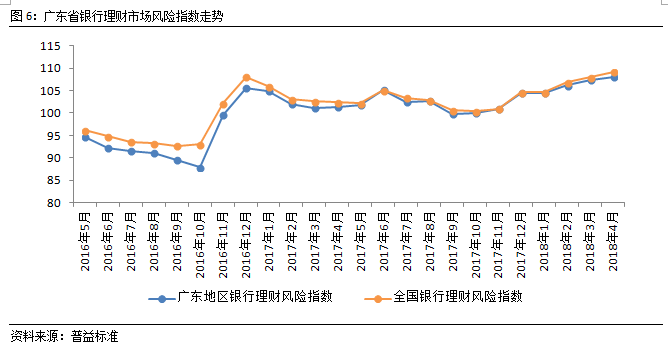 4月,广东省银行理财价格指数进一步下降,市场总风险小幅上升。