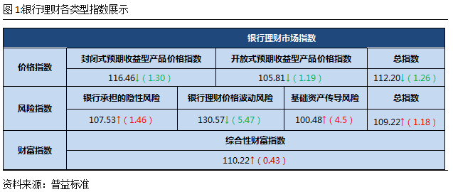 全国银行理财风险指数是由目标银行承担的隐形风险、价格波动风险以及投资于基础资产传递风险三类风险加权所得,主要反映了银行理财市场的整体风险状况。该指数越大说明对应市场的风险也越高,反之则风险越低。