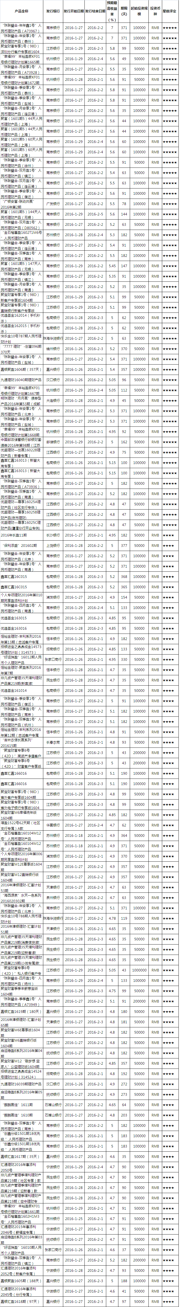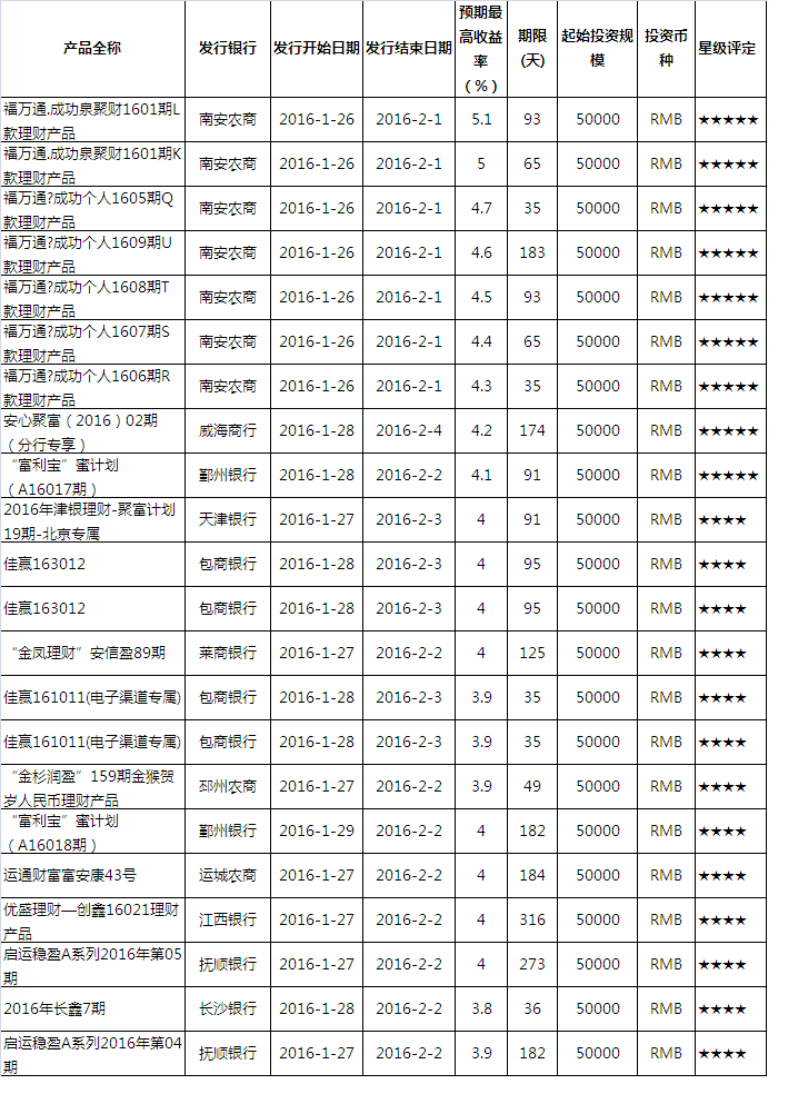本周产品星级评定(按收益类型)
