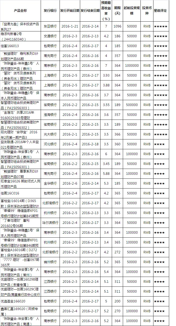 短期产品: