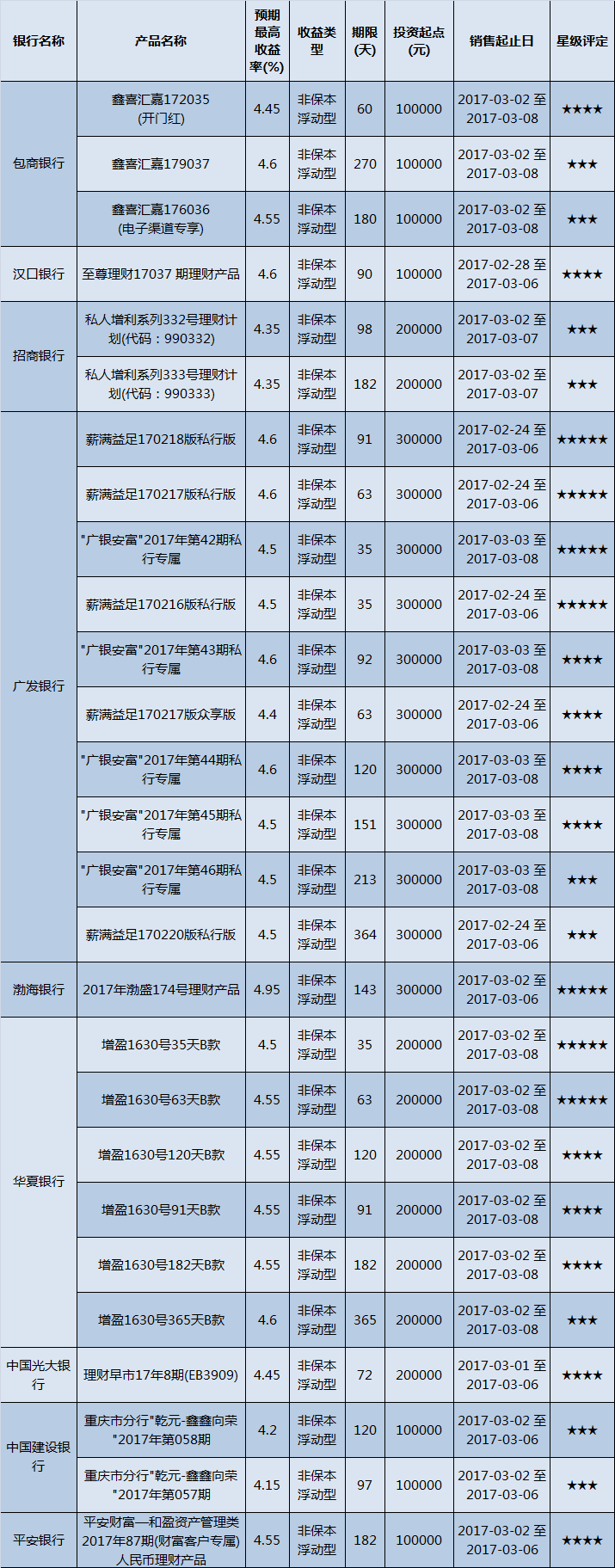 其余产品暂时未予评级。(数据截至上周五18:00)