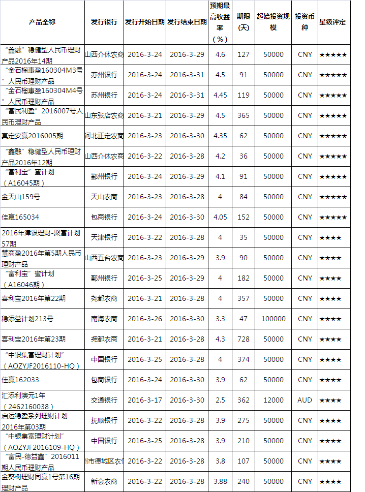 银行理财产品评价>