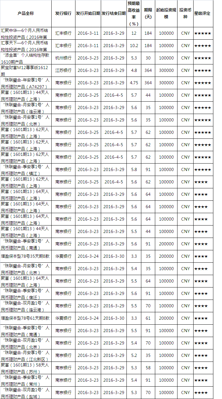 银行理财产品评价>