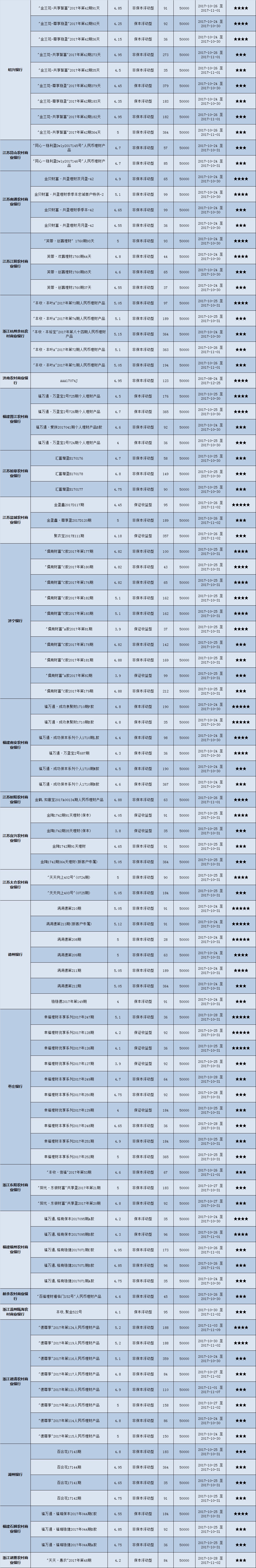 低门槛(10万元以下)理财产品中,华东地区有482款获得普益标准星级评定,平均预期收益率为4.77%。其中三星产品228款,平均预期收益率为4.66%;四星产品159款,平均预期收益率4.83%;五星产品95款,平均预期收益率为4.92%。