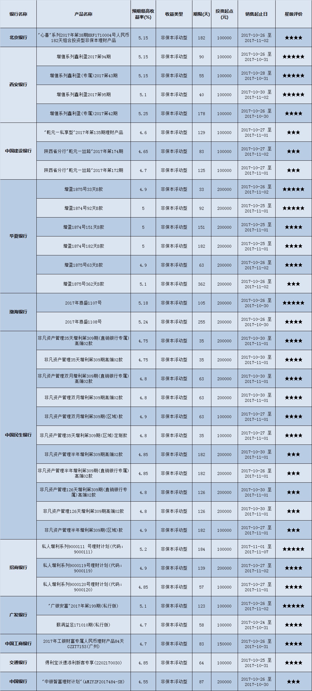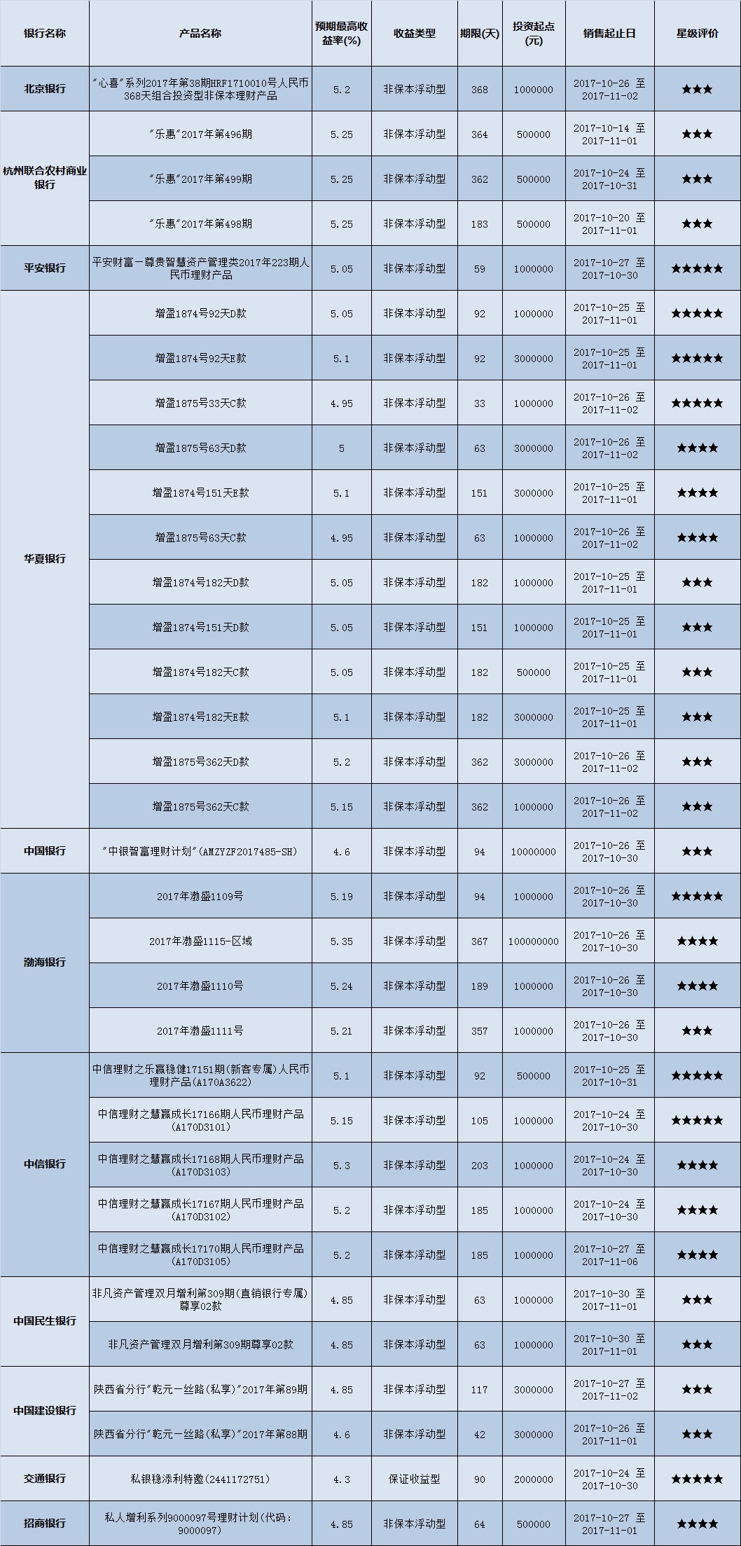 封闭式产品星级评价(2017-10-30)