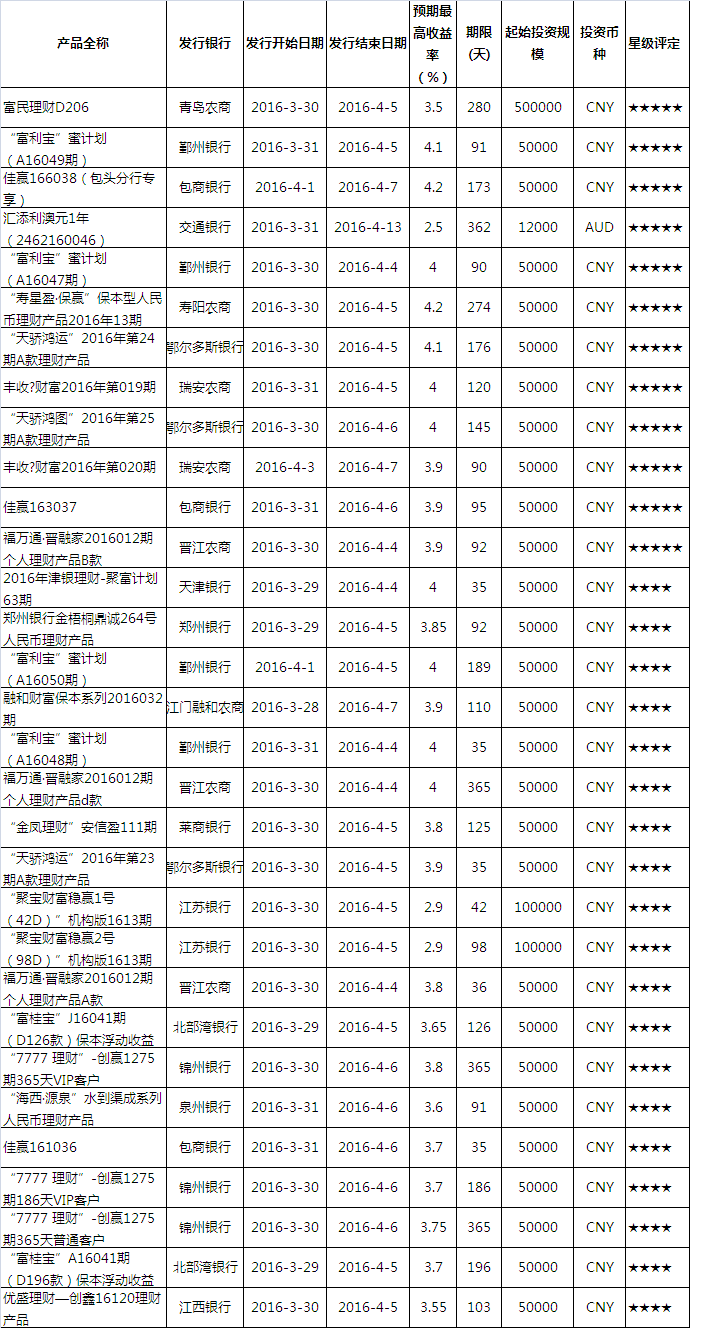 银行理财产品评价>