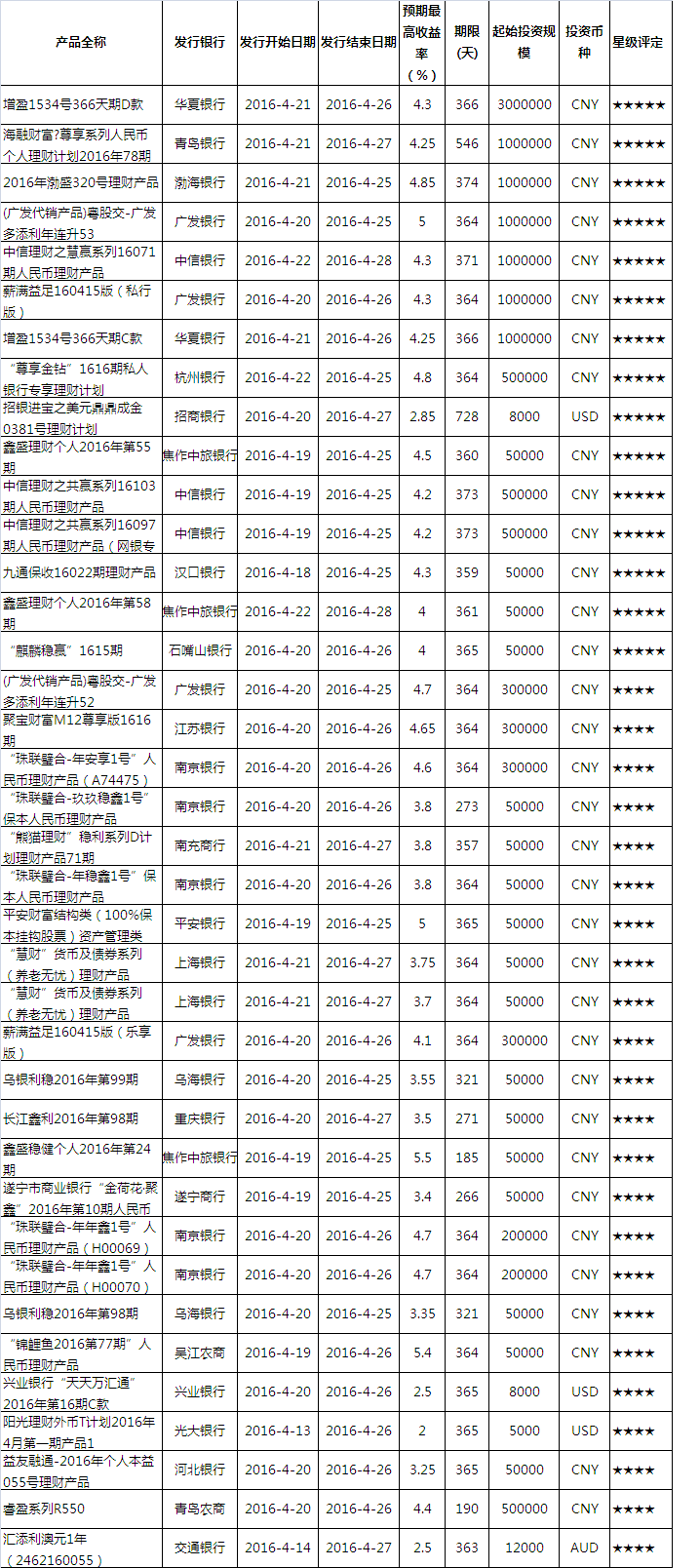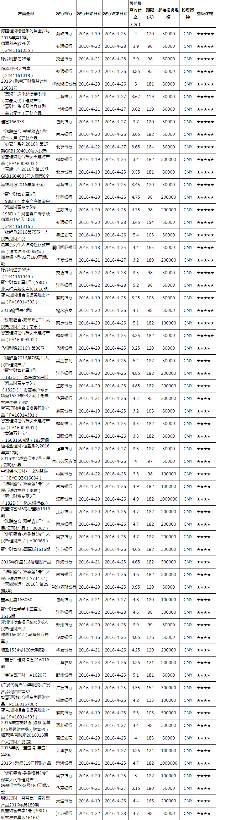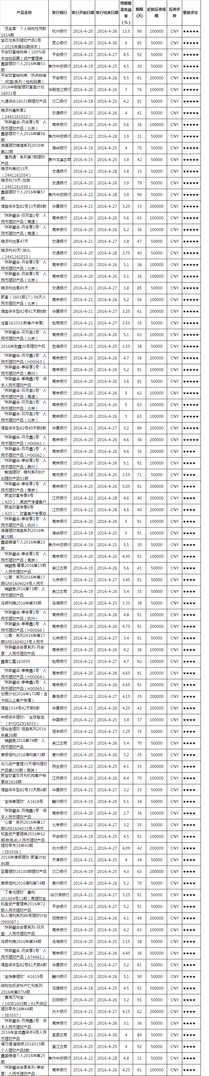 产品星级评定(2016-4-24)