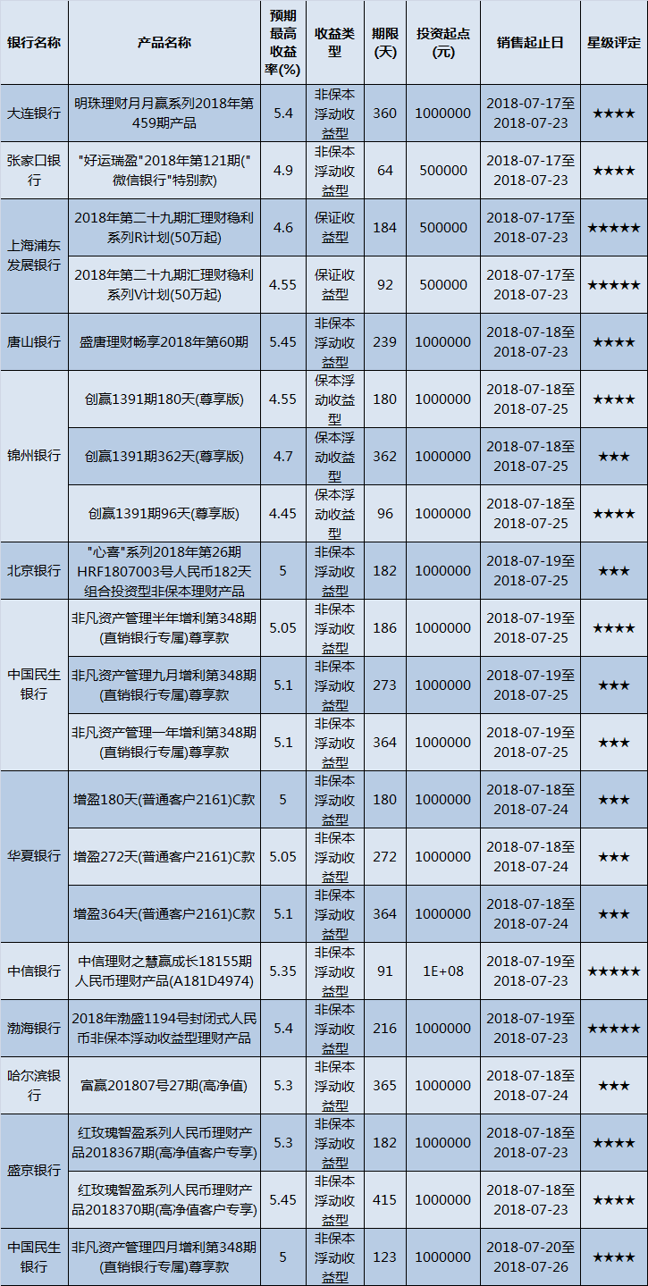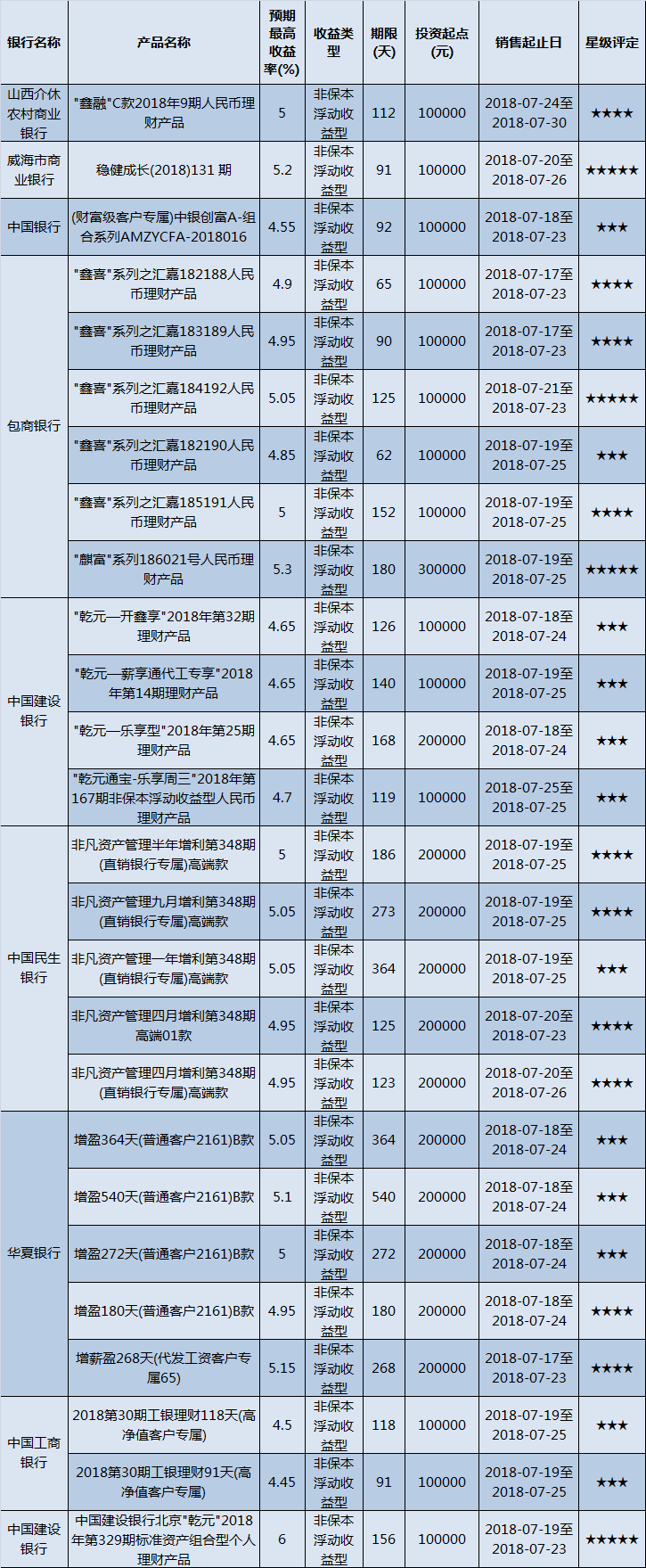 高门槛(50万元及以上)的理财产品中,华北地区有21款获得普益标准星级评定,平均预期收益率为5.04%。其中三星产品8款,平均预期收益率为5.04%;四星产品9款,平均预期收益率为5.06%;五星产品4款,平均预期收益率为4.97%。