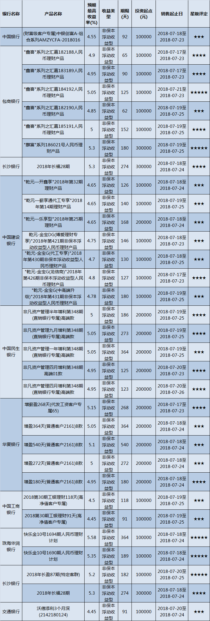 低门槛(10万元以下)理财产品中,华南地区有141款获得普益标准星级评定,平均预期收益率为4.96%。其中三星产品53款,平均预期收益率为4.71%;四星产品51款,平均预期收益率5.04%;五星产品37款,平均预期收益率为5.24%。