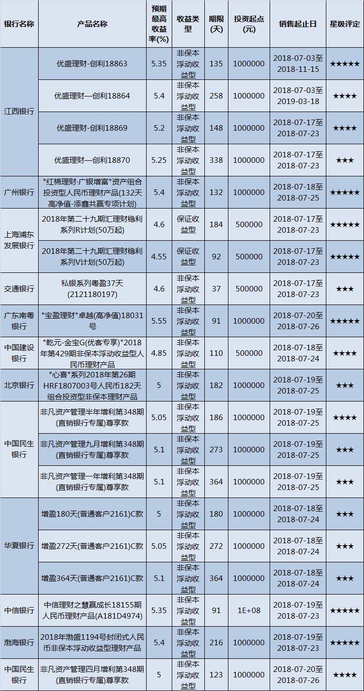 高门槛(50万元及以上)的理财产品中,华南地区有20款获得普益标准星级评定,平均预期收益率为5.09%。其中三星产品8款,平均预期收益率为5.02%;四星产品5款,平均预期收益率为5.1%;五星产品7款,平均预期收益率为5.17%。